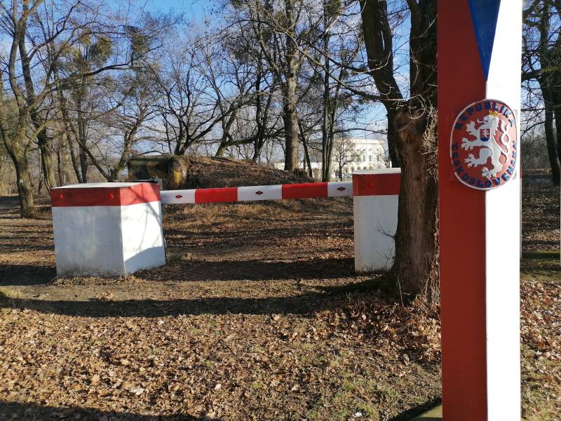 Östlich vom Damm gelangen wir schließlich zu einem weiteren großen Highlight dieser Tour. Zunächst finden wir eine alte Grenzschranke aus der Zeit der Tschechoslowakei wieder. Gleich daneben finden wir einen von mehreren Bunkeranlagen aus dem Gebiet Pohansko. Dort wird unter anderem die Geschichte dieser erklärt. Die Tschechoslowakei schützte nach dem Anschluss Österreichs zu Deutschland im dritten Reich vermehrt ihre Grenzen und erreichten hochmoderne Schutzanlagen.