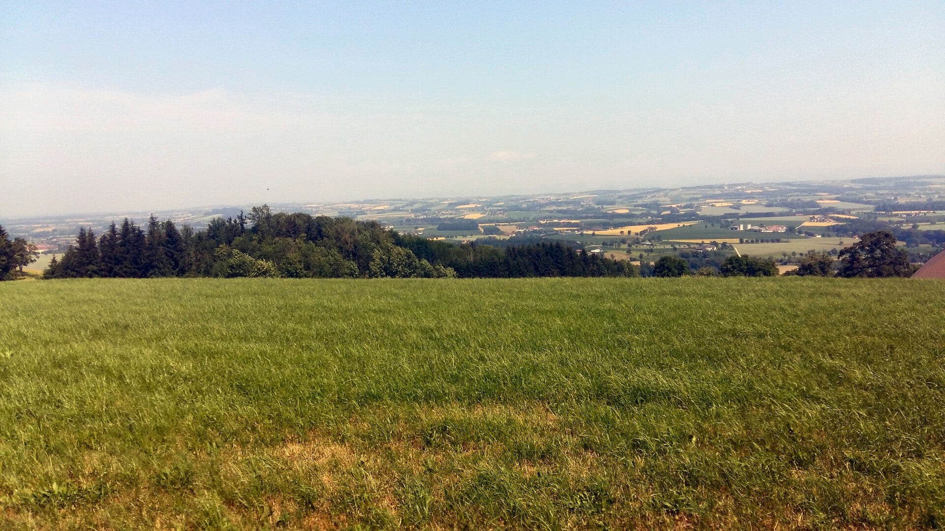 Nachdem ich den Flugplatz im Norden Seitenstetten erreiche, muss ich erneut eine Entscheidung treffen. Als ich die ersten Gewittertürme in Richtung Sonntagberg erblicke, möchte ich keine Zeit mehr verlieren. Und so lasse ich das Eck über Weidersdorf aus und folge gleich der Peter-Lisec-Straße in den Süden nach Seitenstetten. Aber so groß war der Umweg nun auch nicht. Trotzdem ersparte es mir wohl eine halbe Stunde. In Seitenstetten angekommen suche ich einen Supermarkt auf und verköstige mich noch einmal, bzw. fülle meine Wasservorräte auf. Ein kurzer Besuch beim Stift Seitenstetten lassen Erinnerungen an den Stift Altenburg vom NÖ Mariazellerweg wach werden. Über den Feldweg verlasse ich nun Seitenstetten, worauf der Weg seine Richtung nun komplett von Westen in den Südosten abändert. Er führt jetzt geradewegs auf den Sonntagberg zu. Doch zuvor muss ich noch einen weiteren Berg überwinden. Nach dem Schacherhof folgt nun der Aufstieg auf den Blümelsberg. Und auf der Höhe des Wildheurigen Kronawetters überkommt mich wieder dieser einmalige Fernblick, welcher mich nun endgültig in den oberösterreichischen Mariazellerweg von 2015 versetzt. Kein Wunder. Ich bin nun ganz in seiner Nähe. Und am Karl-Lammerhuber-Blick am Gerhartsberg verschlägt es mir dann die Sprache.