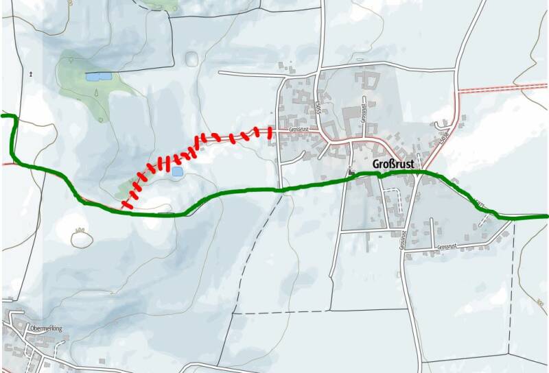 Wir folgen nun dem Karrenweg weiter. Wir erkennen vor uns nun den kleinen Hügel des großen Kölblings. Genau so erblicken wir nun auch die Ederdingerstraße sowie ein Eisenbahngleis vor uns. Und hier hat sich der Weg verändert.